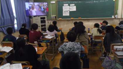次にアメリカの小学校の様子の動画視聴して日本と似ている所や違うところを見つけて教科書に書きました。