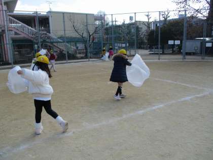 子どもたちは寒さを忘れるくらい夢中になって冬の風を楽しんでいました。