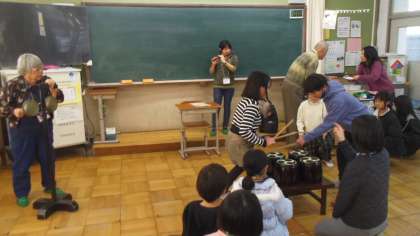 一人打ちや二人打ちの練習をしました。6年生の子どもたちは上手に打てています。今年度から六斎念仏部に参加したことどもたちも上手に打てるようになってきています。