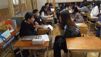 後半にはペアトークをしました。小学校での一番の思い出とその内容や感想を詳しく伝え合いました。