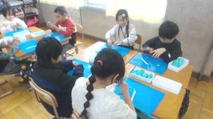 図画工作科で、2年生の思い出を粘土で作りました。動物園での楽しい思い出や日々の学習等、それぞれが楽しかった思い出をたくさん作りました。