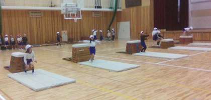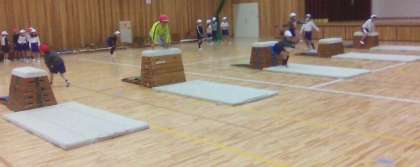 体育科では、自分が跳べるわざ、高さの跳び箱で練習しています。友だちにコツを教えてもらって、今までできなかった跳び方もできるようになってきました。