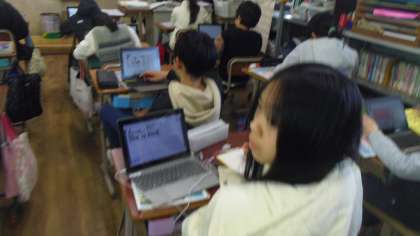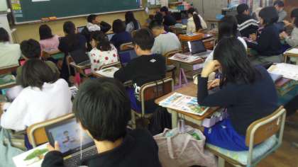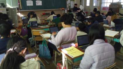次に各自のギガ端末を使って表現や単語の練習をしました。友達と一緒に練習をしている人もいました。