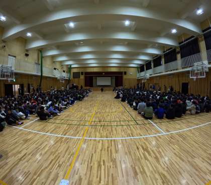 20日(木)、アリーナにて全校音楽を行いました。