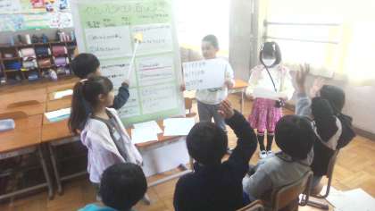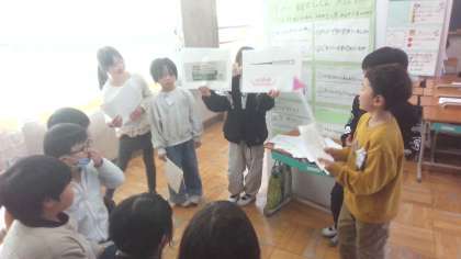 来週の27日(木)のポスター発表に向けて、他のクラスの友達に発表をしました。今まで教室で練習してきたことを生かして、発表することができていました。