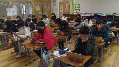 3学期に学習した内容のリスニングチャレンジを行いました。子どもたちは音声を聞いて当てはまる内容をロイロノートで回答しました。