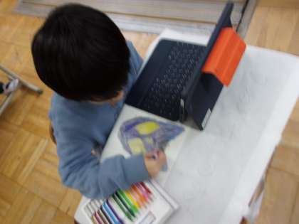 自分の描きたい絵を事前にロイロノートを活用して調べ、それを見ながら描きました。6日(木)にもその続きを行いました。
