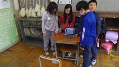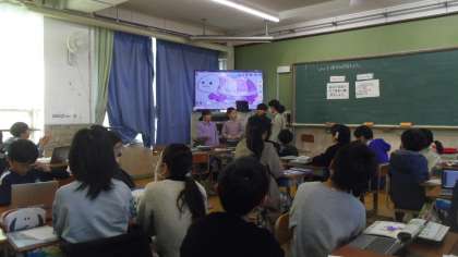 後半はグループやクラス全体で発表の練習をしました。来週の月曜日に2年生に絵本の紹介をします。