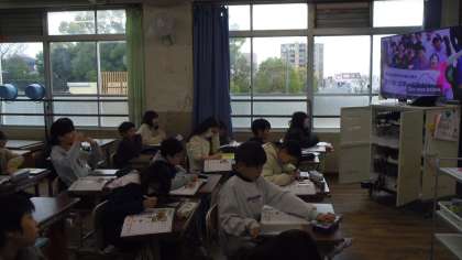 次に文化探検をしました。日本人のヒーローについての動画を視聴してわかったことを教科書に記入しました。