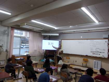 事前に3月11日に起こった東日本大震災について学習をした後、今回は1部屋に集まっているのではなく、それぞれの学習の部屋に分かれている状態でシェイクアウト訓練を行いました。子どもたちは、それぞれの部屋で自分の机の下などに隠れて避難行動をすることができました。