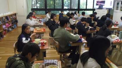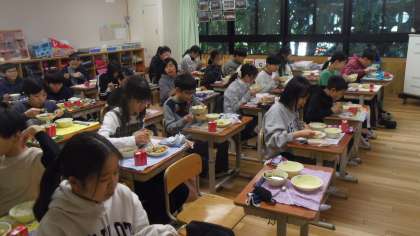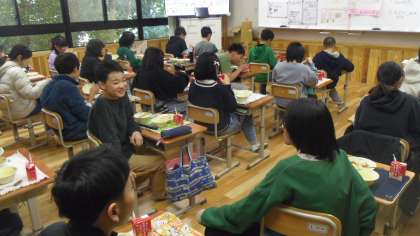 子どもたちは味わいながら給食を食べました。
