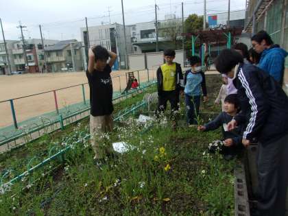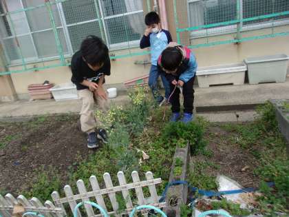 11日(金)、矢車学級は朝の会に畑を見に行きました。