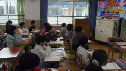 次に歌を歌いました。毎時間歌を歌ってなれ親しんでいきます。
