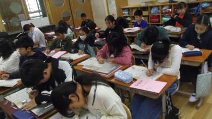 はじめにSound and Lettersをしました。Bの発音を聞いたり、Bを書いたりしました。