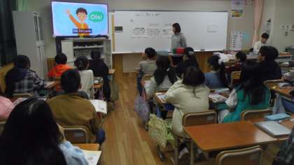 その次に歌を歌いました。今日が初めてなので、これから毎時間歌に慣れていきます。