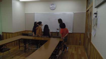 今日のイングリッシュカフェは5年生の子どもと行いました、昼休みにALTの先生が集まった子どもたちにクイズを出していました。