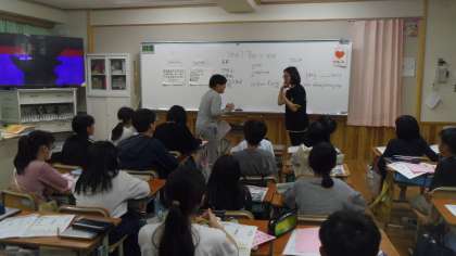最後にALTの先生と数名がペアトークを行いました。みんな緊張していましたが、しっかり自己紹介ができました。