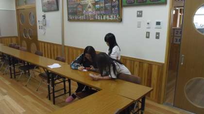 今日は4年生のイングリッシュカフェを昼休みに行いました。イラストが得意なALTの先生に4年生の子どもが絵を描いてもらっていました。