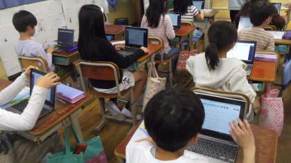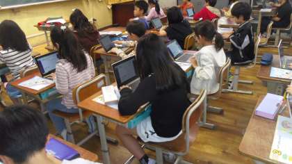 4年生の外国語活動では毎時間の学習のふりかえりのロイロノートで行っています。