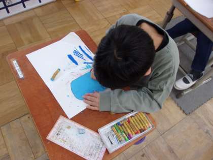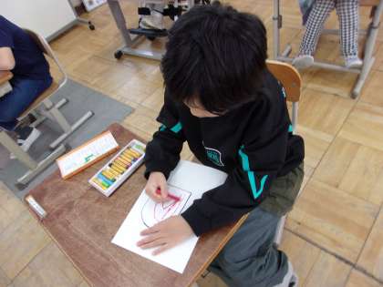 25日(金)、矢車学級では図画工作科でジャンボこいのぼりのうろこを描きました。