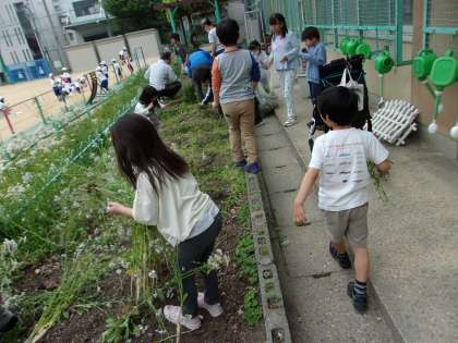 28日(月)、矢車学級では「はたけをたがやそう」で草抜きをしました。