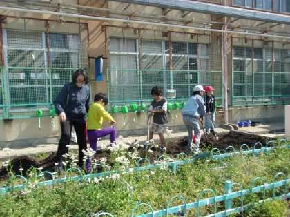 30日(水)は遊具遊びを行ってから、畑の整備をしました。