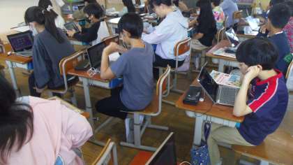 各自のギガ端末でデジタル教科書を使って表現や単語の練習をしました。