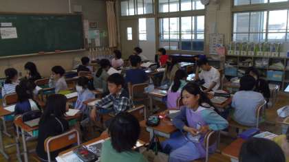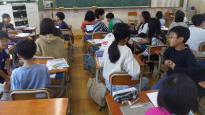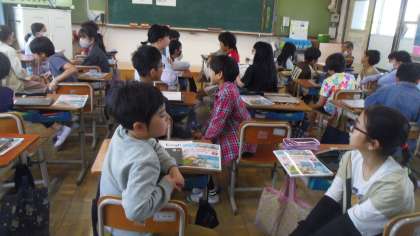 授業の後半にはペアトークをしました。ペアで名前のつづりや好きなものを伝え合いました。