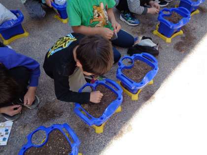 自分で土を入れて,肥料を混ぜて,種を1粒ずつ丁寧にまきました。