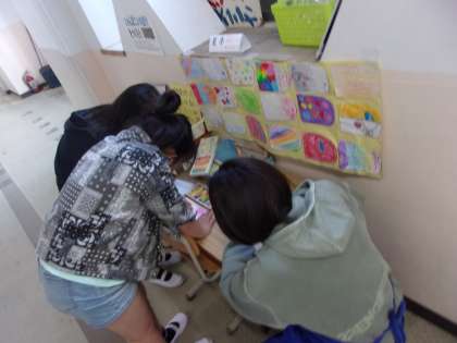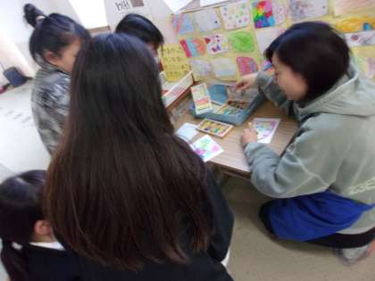 休み時間に矢車学級の前まで来て、うろこをつくる子どもたちや先生方がいました。