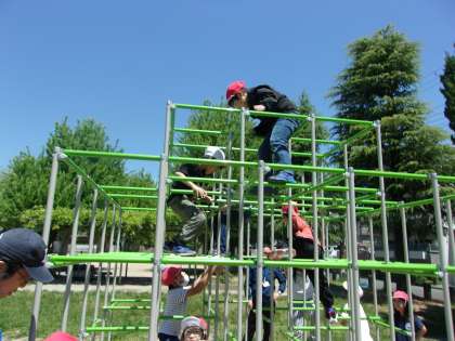 ジャングルジムでは、普段西院小の遊具を使うときに「三点支持」を意識していたおかげで、公園のジャングルジムでも三点支持を意識して安全に楽しむことができました。