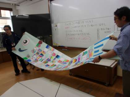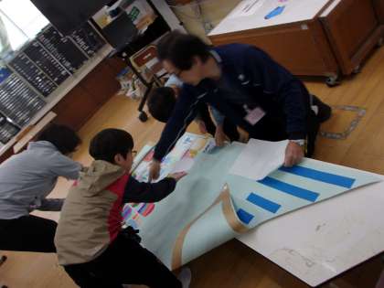 9日(金)、矢車学級ではジャンボこいのぼりを完成させました。