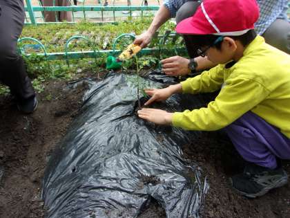 苗を植えた後には、少し土をかぶせました。