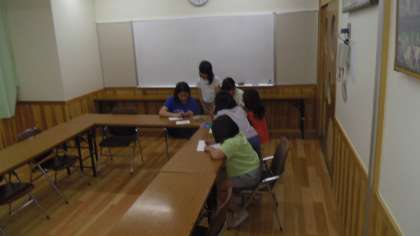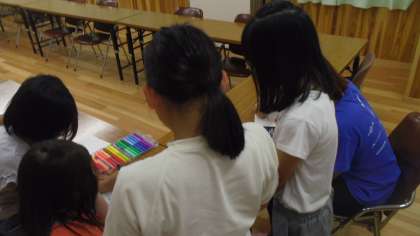 昼休みに4年生のイングリッシュカフェを行いました。ALTの先生にイラストを描いてもらったり、一緒に英語でお話をしたりしました。