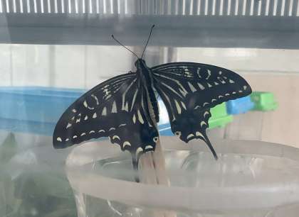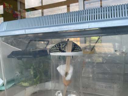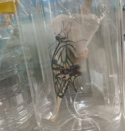 理科の学習で、アゲハチョウをたまごから育てています。今日の6時間目終了後すぐに、さなぎが孵化しました。成虫になった姿を見て、子どもたちも嬉しそうでした。