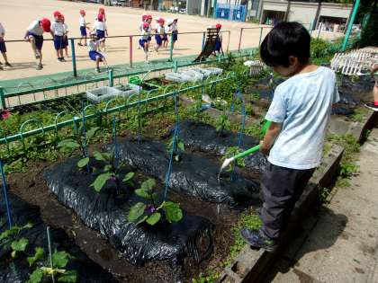 ほかの野菜も含め、水やりをしていきます。