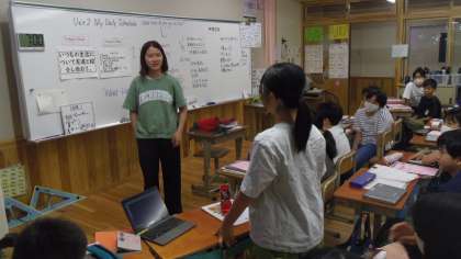 最後には数名の子どもがALTの先生と生活について伝え合いました。