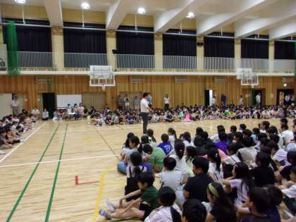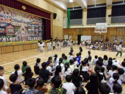 2〜6年生までそれぞれの学年で1年生を迎えるために出し物をしました。最後には1年生からお返しの出し物がありました。どの学年も素敵な出し物でした。