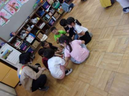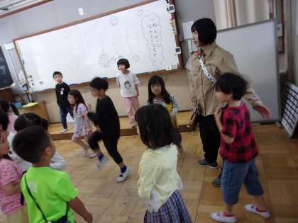 矢車学級からの自己紹介の後、じゃんけん列車、動物園に行こうよのゲームで仲良く触れ合いました。