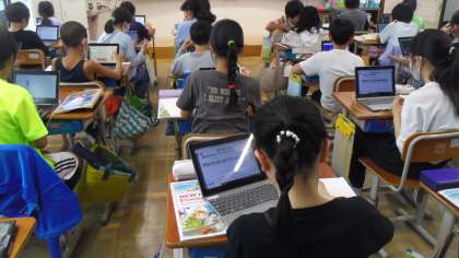 その次に各自のギガ端末を使って表現、単語の練習をしました。