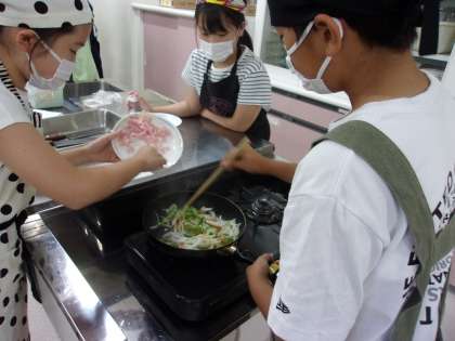 包丁で野菜を切ったり、火を使って炒めたりすることを楽しく安全にすることができました。