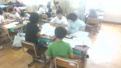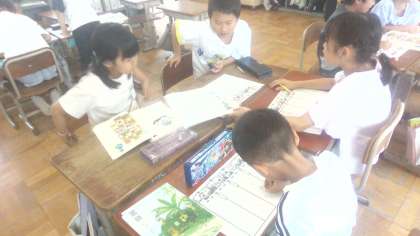 国語科の「漢字の広場」の学習です。絵の中の漢字を使って、文を作りました。つなぎ言葉も使って、お話がつながるようにしました。