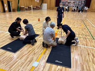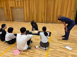 水泳習が始まっています。水難事故がもし起こった場合に救命救急を行うために教職員が講習を受けました。右京消防署の方の指導のもと、心臓マッサージ、AED使用などについて学びました。