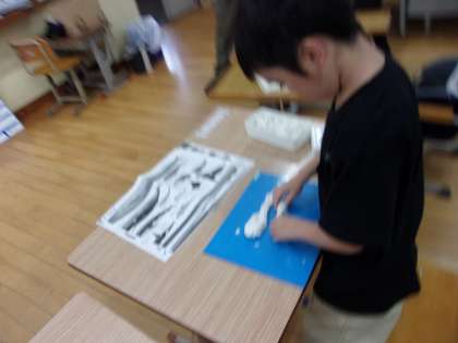 11日(水)、矢車学級では図画工作科で「ねんどでつくろう」の学習に取り組みました。今回は動物または海の生き物というテーマでそれぞれ作品をつくりました。最後には、ロイロノートに撮っておいた写真を使いながら、みんなで自分たちのつくった作品を鑑賞しました。