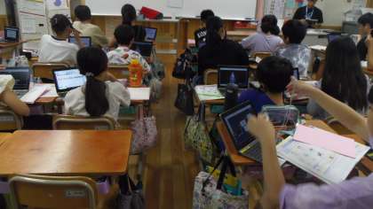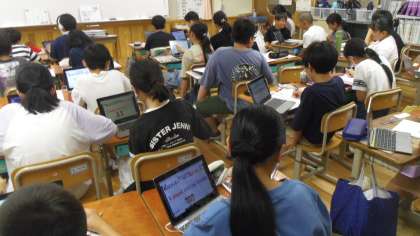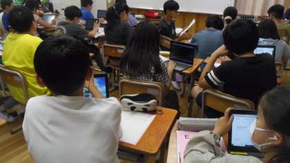 次に各自のギガ端末を使って表現の練習をしました。指導者がAIで作成した曲で練習をしている人もいました。