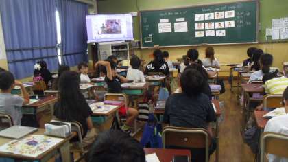 その次にLet's Watch and Thinkをしました。デジタル教科書で1日の生活について視聴しました。