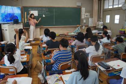 図形の角度を求める学習で,実際に図形を重ねて考えながら,分かりやすい考え方を話し合うことができました。