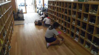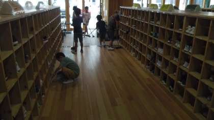 本館下駄箱や本館1階廊下で子どもたちがしっかり掃除をしていました。
