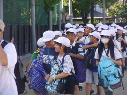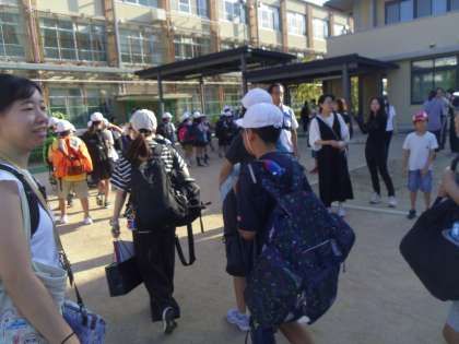 子どもたちは元気よく学校を出発しました。2日間の修学旅行を安全に気をつけて楽しんできます。お見送りに来ていただきました保護者の方々、ありがとうございました。