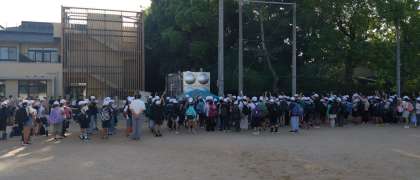 出発式は、代表の人が「お互いに気づかい、楽しい修学旅行にしましょう。」と挨拶をしてくれました。ほごの皆さん、早朝からお見送り、ありがとうございました。行ってきます。